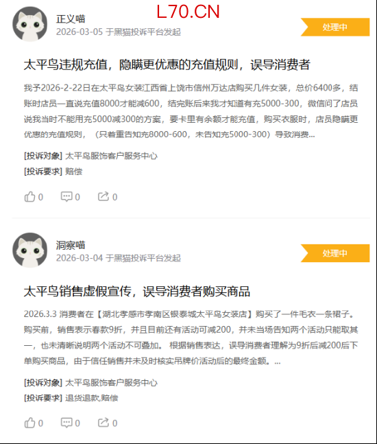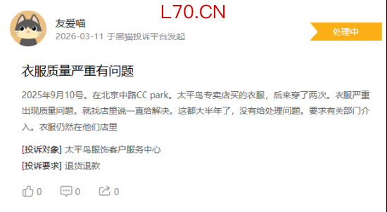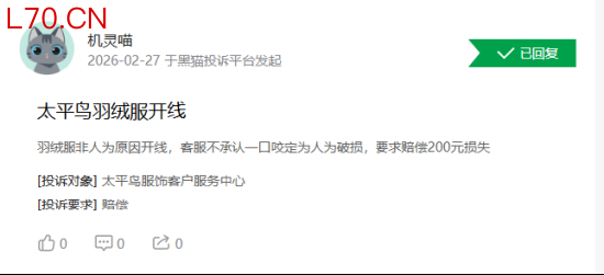 315在行动|消费者称太平鸟存在羽绒服开线,商家误导消费等问题