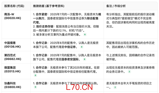 无极资本作为基石投资者频繁出现在相关IPO项目中,引发了市场对其是否参与类似操作的联想。