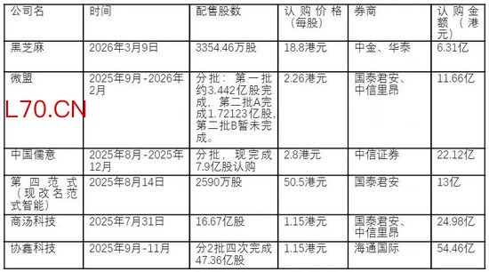 商汤、协鑫科技、中国儒意、微盟集团、范式智能(第四范式)、黑芝麻智能,都有它的身影,且为唯一认购人(独家认购)。