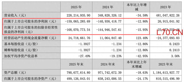 3月17日,三超新材(300554)正式发布2025年年报,报告期内,该上市公司实现营业收入2.28亿元,同比下降34.58%;净利润为亏损1.59亿元,业绩同比下滑12.86%,2024年亏损1.41亿元;扣非净利润为-1.68亿元,业绩同比下滑15.95%,2024年为亏损1.45亿元;研发费用2314.07万元,同比下降36.32%。