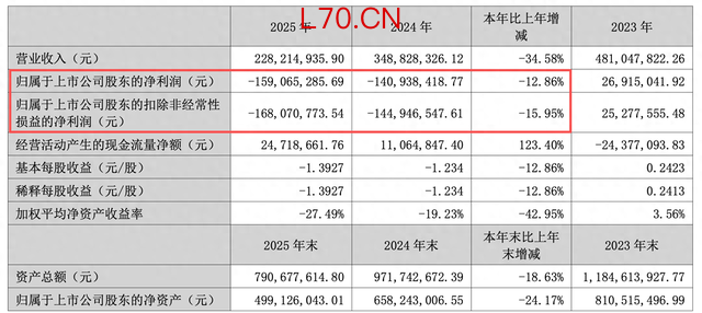 3月17日,三超新材(300554)正式发布2025年年报,报告期内,该上市公司实现营业收入2.28亿元,同比下降34.58%;净利润为亏损1.59亿元,业绩同比下滑12.86%,2024年亏损1.41亿元;扣非净利润为-1.68亿元,业绩同比下滑15.95%,2024年为亏损1.45亿元;研发费用2314.07万元,同比下降36.32%。