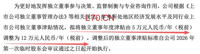 2025年12月22日,三超新材董事会审议通过议案,拟将独立董事津贴由5万元/年(税前)调整为12万元/年(税前),调整后的独立董事津贴标准自公司2026年第一次临时股东会审议通过之日起开始执行。