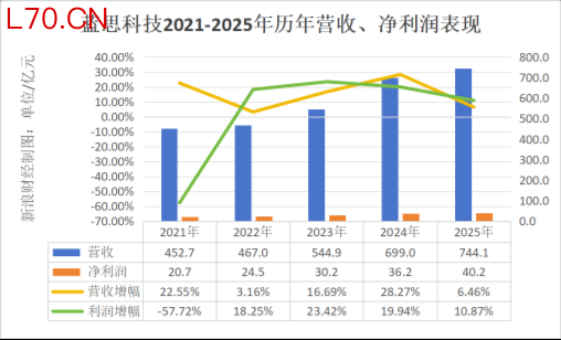 如果从全年增速来看,刚过去的2025年,蓝思科技营收及净利润增速,在经历疫情影响下跌并快速修复后,开始进入低速增长状态。2025年,蓝思科技全年营收744.1亿元,同比增长6.46%,为近三年增速新低;同期,公司净利润40.2亿元,同比增长10.87%,为近四年最低增速。