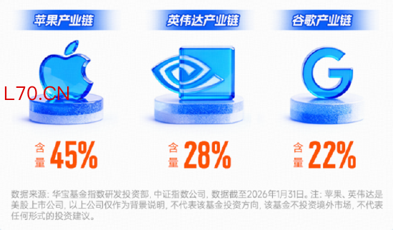 元股证券:ygzq.hk【拥抱科技巨头,抢占发展先机】电子ETF(515260)标的指数覆盖热门科技概念,截至1月底,苹果、英伟达、谷歌产业链权重占比分别为45.19%、27.87%、21.85%,深度绑定全球科技龙头成长红利,有望受益于科技巨头产业扩张与技术创新。