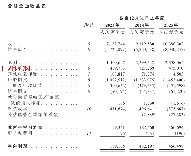 招股书显示,在过去的2023年、2024年和2025年,晶合集成的营业收入分别为人民币71.83亿、91.20亿和103.88亿元,相应的净利润分别为人民币1.19亿、4.82亿和4.66亿元。