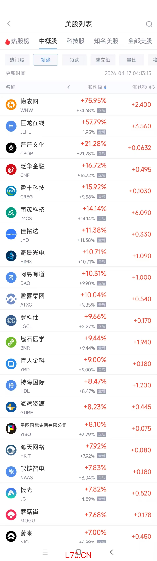领涨中概股列表:
